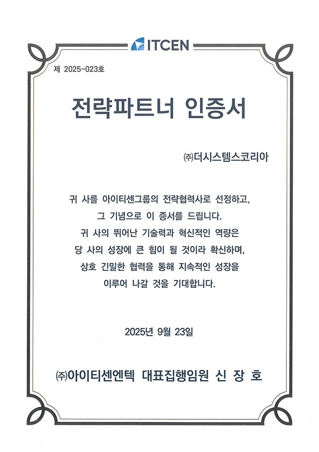 더시스템스코리아는 IT 신기술 전문회사로 변화하는 미래를 선도합니다.